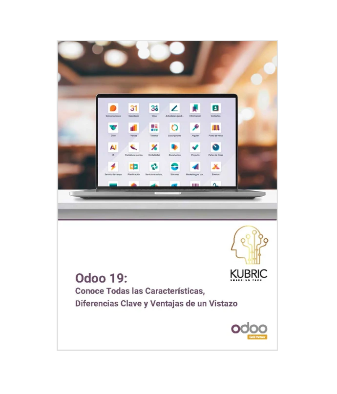 Descarga de forma gratuita este brochure y conoce más de Odoo 19 con integración de IA en todos los módulos, importantes mejoras en las aplicaciones principales.