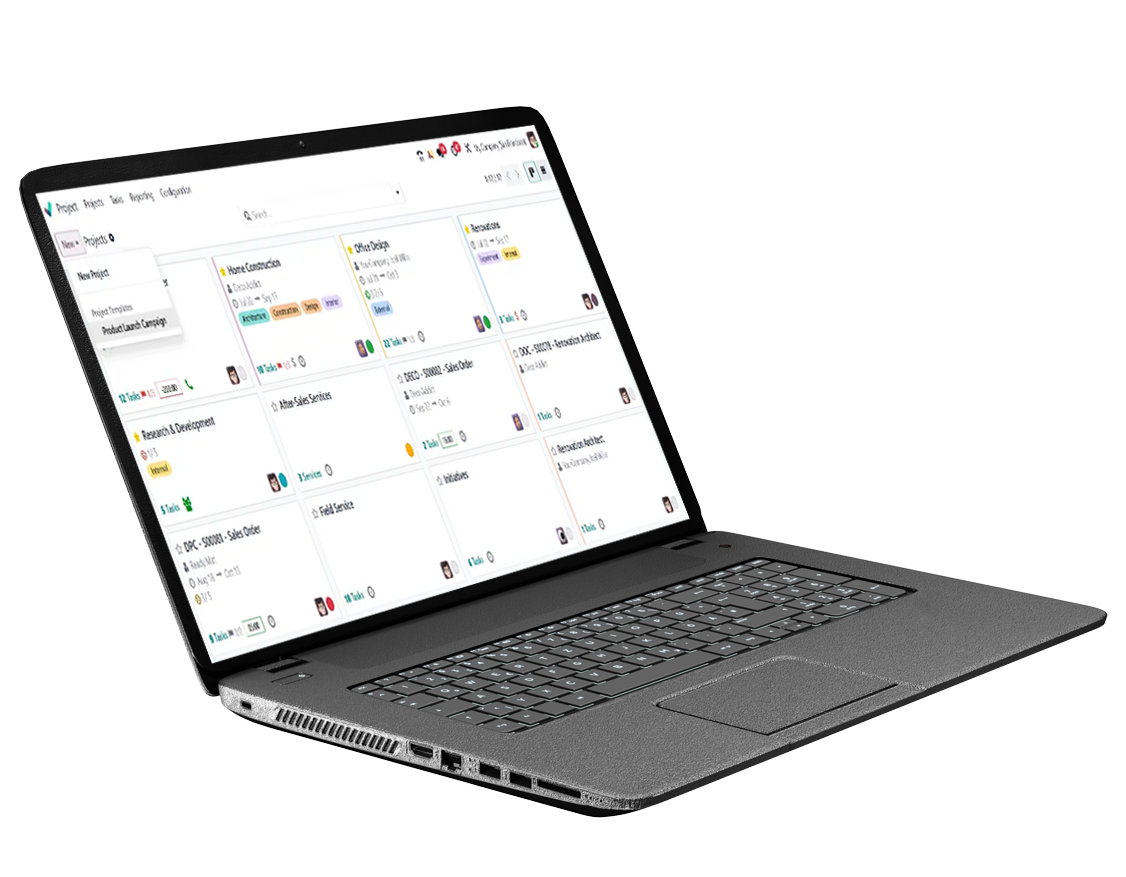 Odoo 19 agiliza significativamente la ejecución de proyectos desde el inicio hasta la entrega. Los proyectos comienzan más limpios, se desarrollan con mayor fluidez y se completan a tiempo con mayor frecuencia.